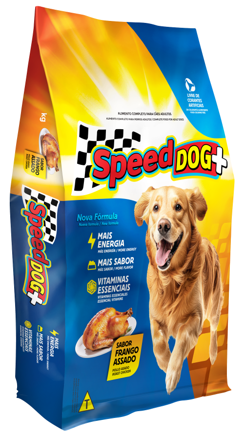 Speed Dog® é um alimento completo e balanceado para cães adultos de todas as raças.
